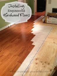 Hardwood floors are durable beautiful and a great diy project. Use these step by step instructions to install engineered hardwood floors in your home. Put the first board up against the mason s line with the groove side facing away from the walls.